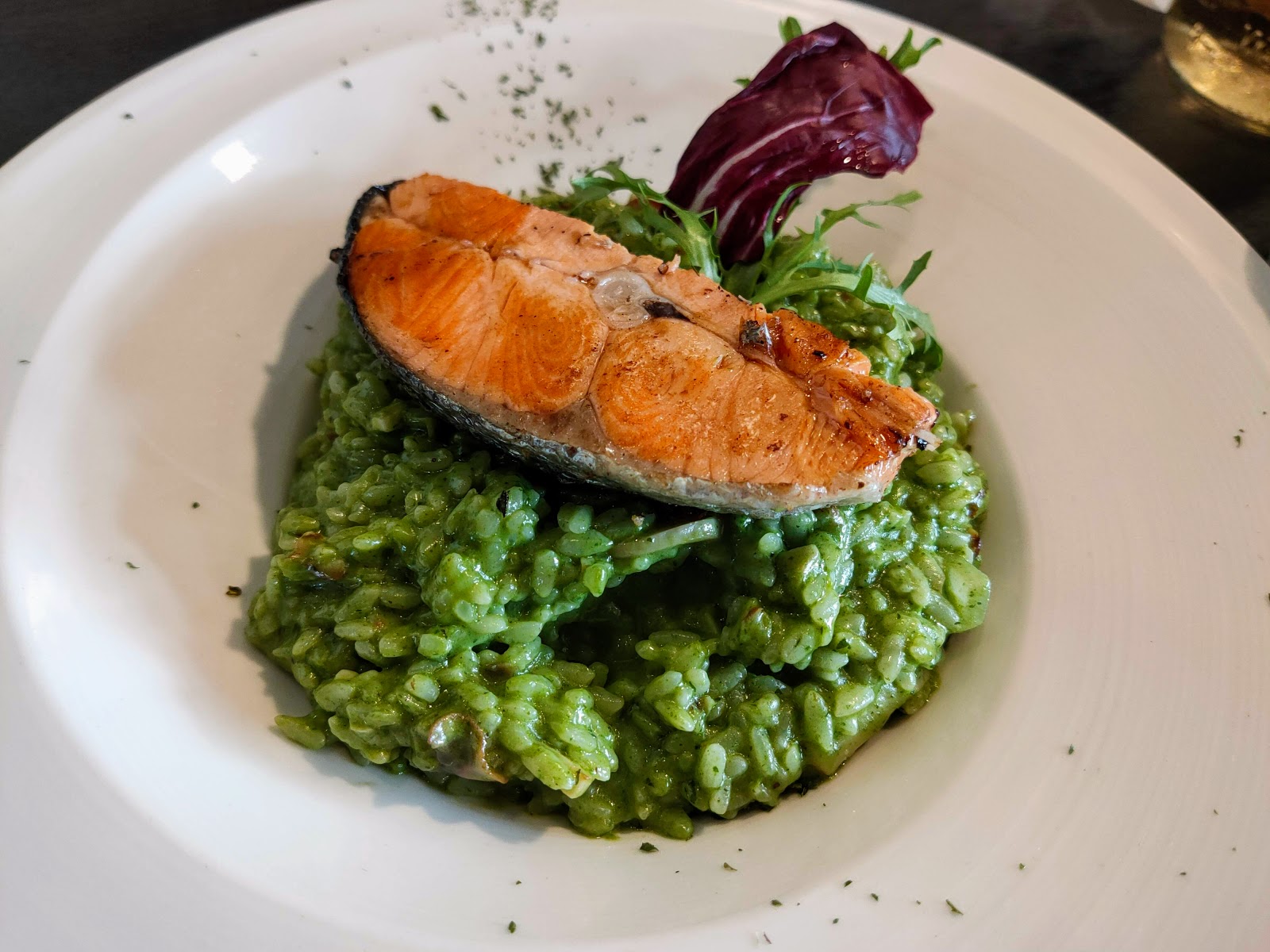 👆青醬奶油鮭魚燉飯 $250元,
